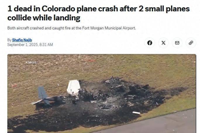 据美媒2日报道,美国联邦航空管理局(FAA)称,日前,美国两架小型飞机在科罗拉多州东北部一处机场试图降落时在空中相撞,造成1人死亡、3人受伤。