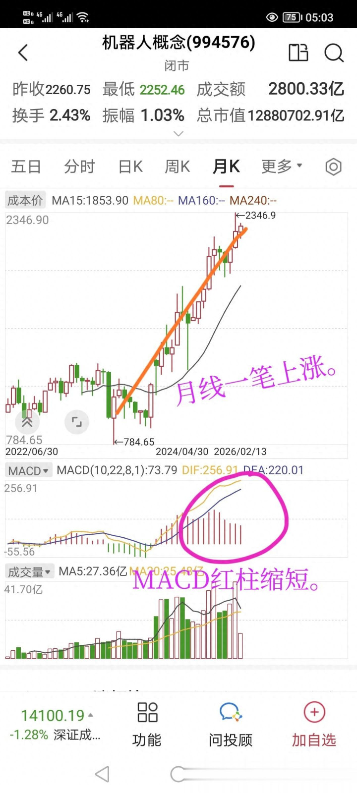 总之,机器人概念节后,从长线讲还是有机会的,结构上也支持。但风险也是不小的。特别是周线和日线,激进的应当见好就收,稳妥的,还是先别趟这次混水,毕竟已经上涨了整整一年了。