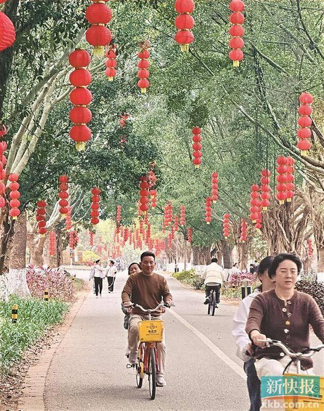 ■春节期间,大夫山森林公园内红灯笼高挂,不少市民来这里骑行、徒步。金瑜/摄