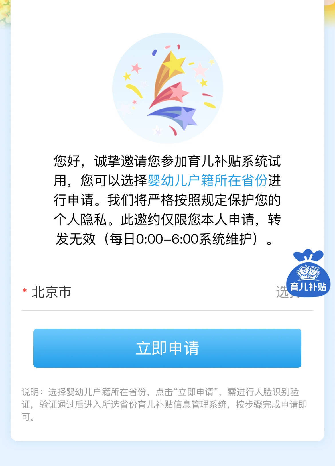 全国统一育儿补贴信息管理系统申领